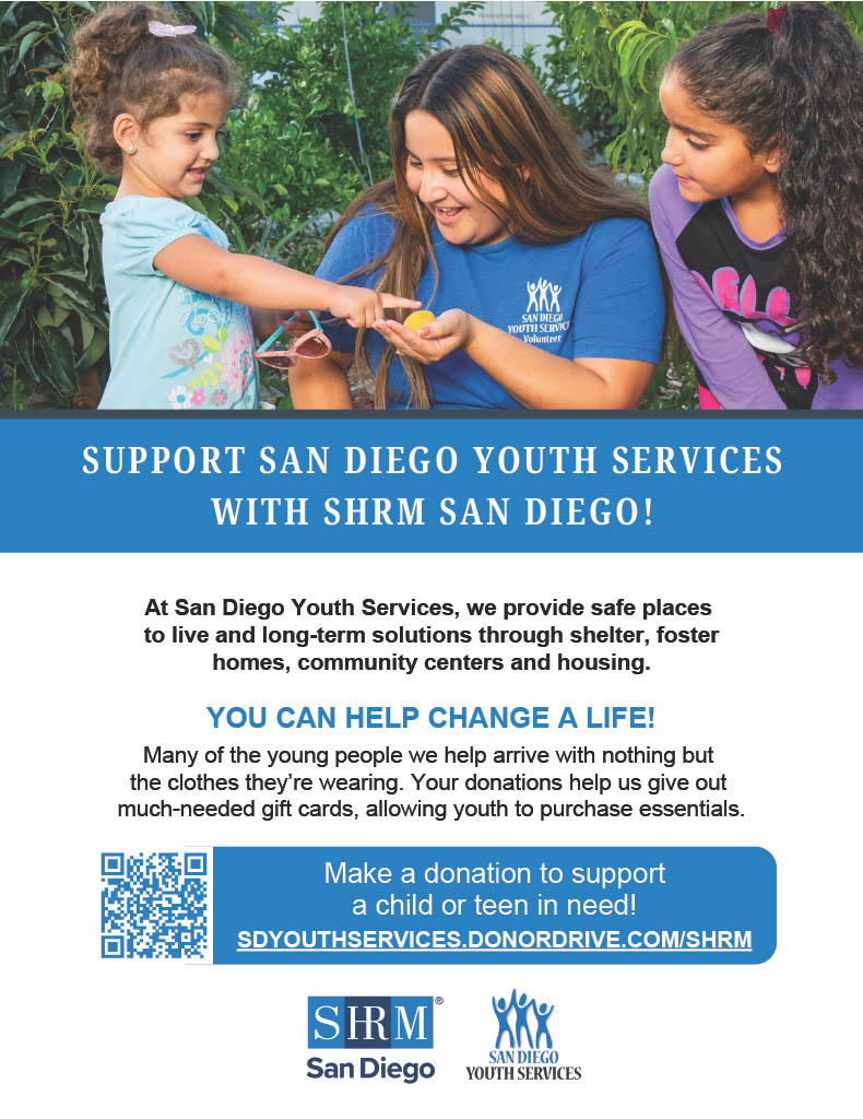 San Diego SHRM is the local chapter of the national Society for Human Resource Management (SHRM). Since 1945, we have provided business professionals with the resources they need to excel in their careers. Become a member and discover new opportunities to network with other HR professionals, stay up to date on the latest HR legislation, tap into our dedicated HR career center, and much more.